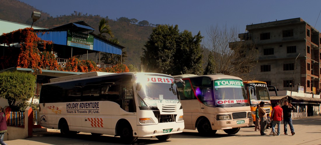 It is possible to go out of the bus when getting stuck, but don't go too far from your bus as they'll often take off quickly. Most delays occur during the monsoon season (June-August) due to landslides blocking the road. Once you go further from Mugling, it's usually alright and shortly after you will stop for lunch at the same type of restaurant you stopped for breakfast in the morning.